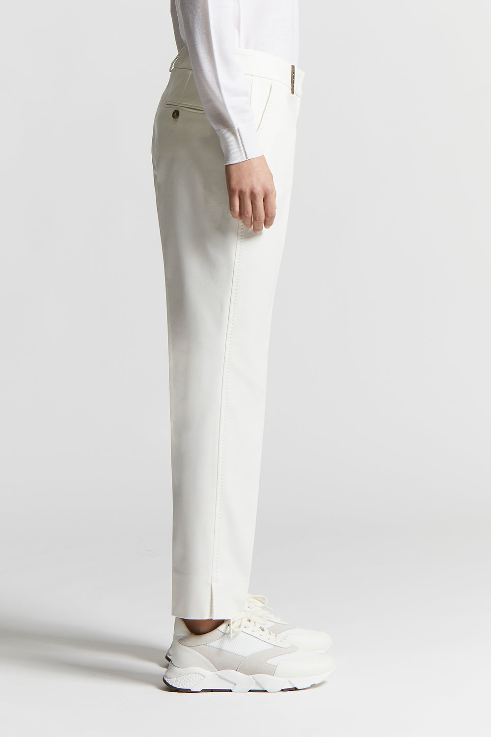 A traditional elegance characterises these cigarette trousers, made of compact stretch cotton-viscose, premium materials that combine strength and comfort.