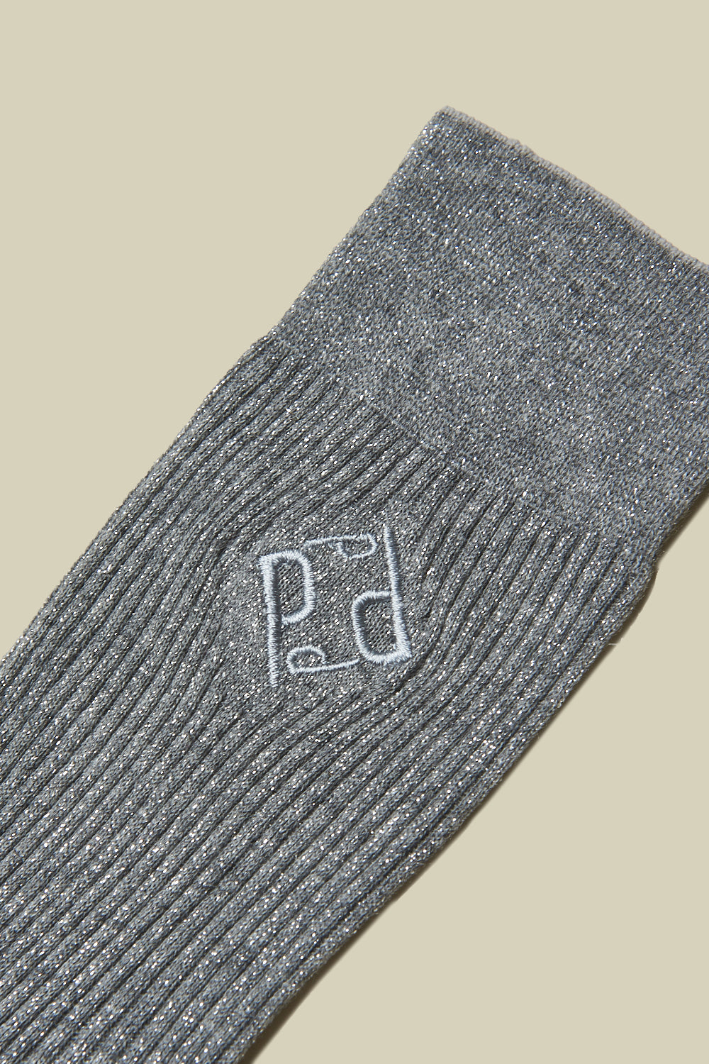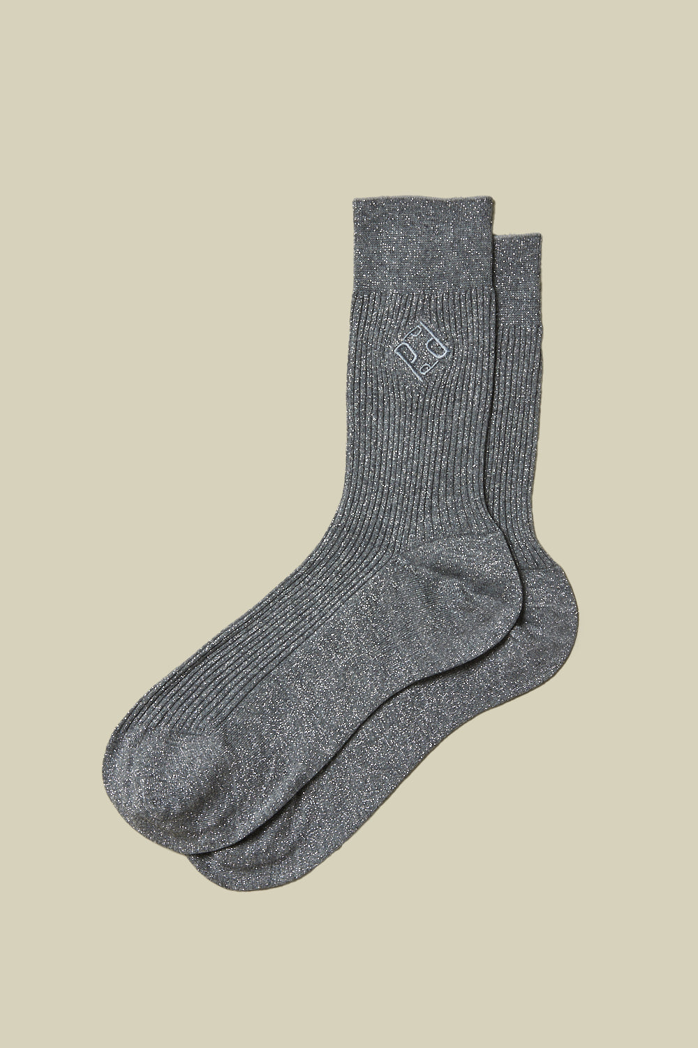 A touch of everyday luxury, these calf-length socks in ribbed lurex cotton offer comfort and elegance.