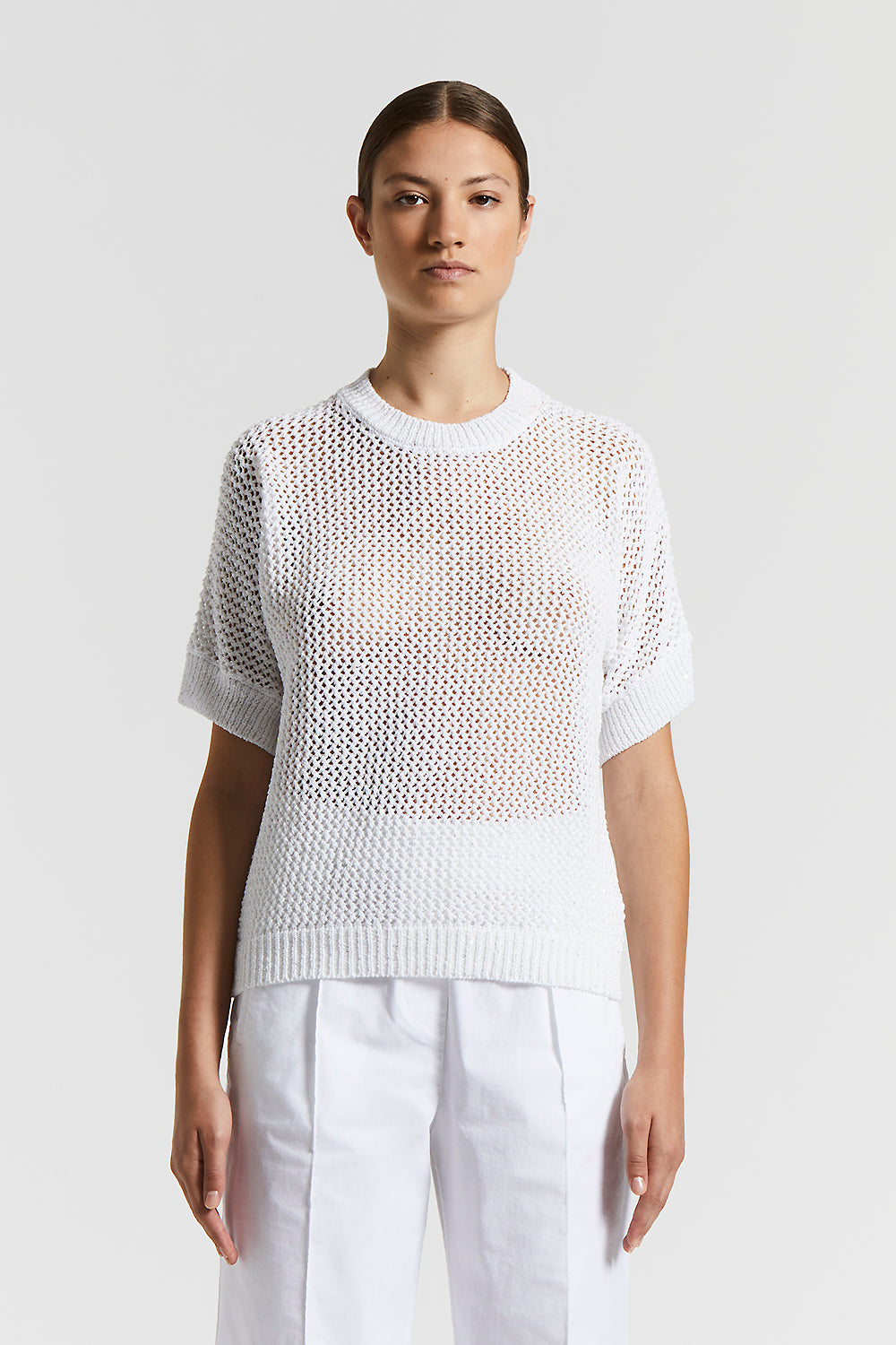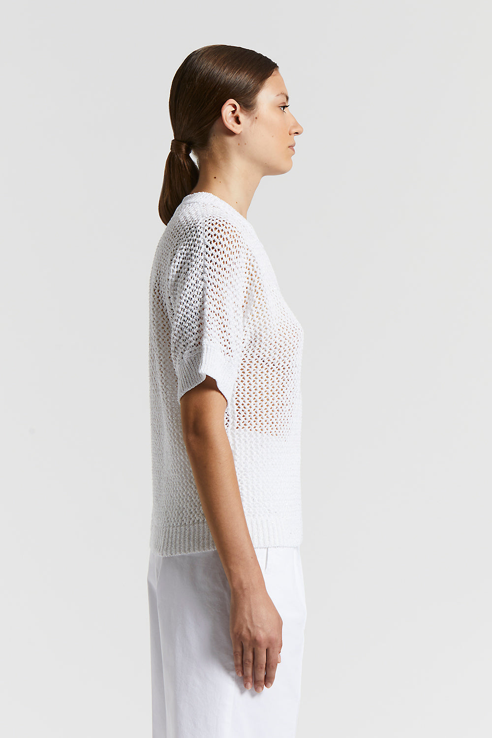 Peserico – Cotton blend mouliné sweater with sequins – Pure White