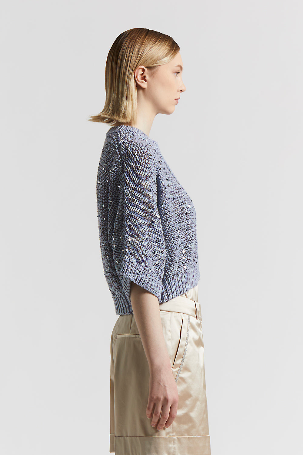 Peserico – Cotton ribbon cardigan with maxi sequins – Sunrise blue