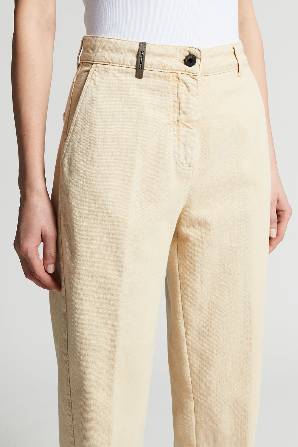 Peserico – Denim carrot trousers in stretch cotton boule – Sunshine yellow