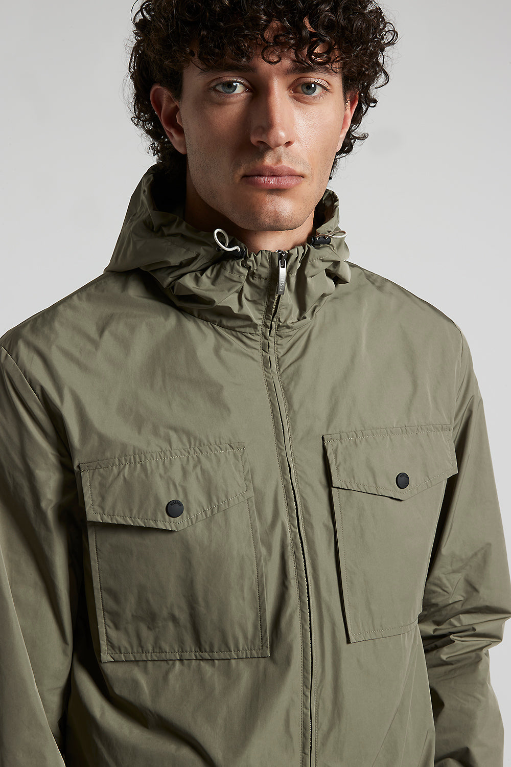 A modern, practical jacket with a strong personality in light, water-repellent Solotex® technical fabric, ideal for facing spring/summer days with style.