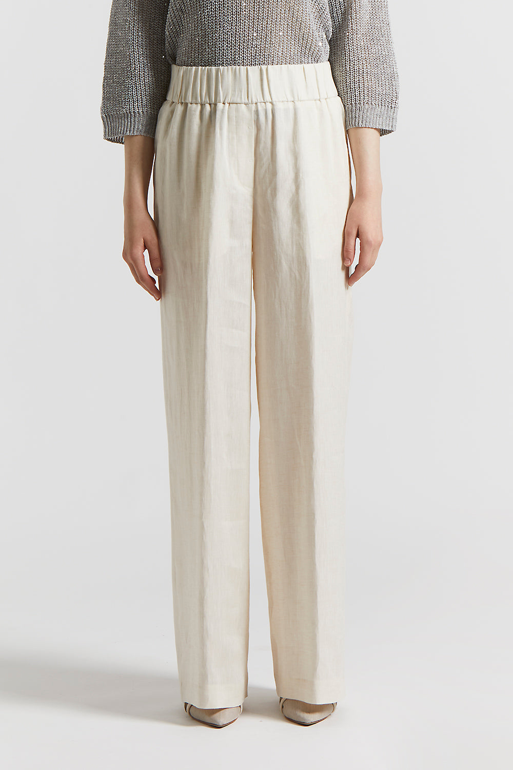 Peserico – Trousers in light and cool pure linen fabric – Quartz sand