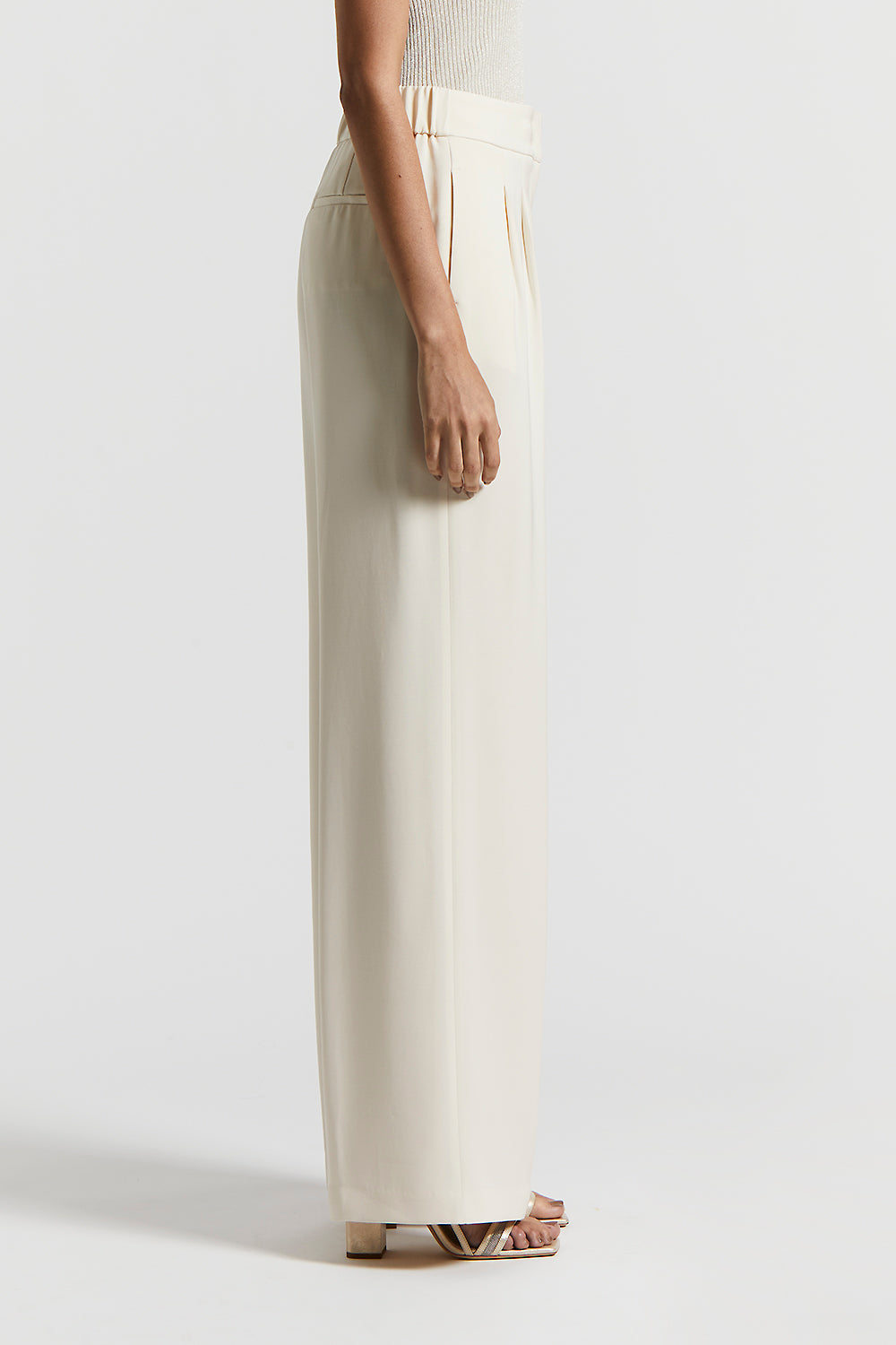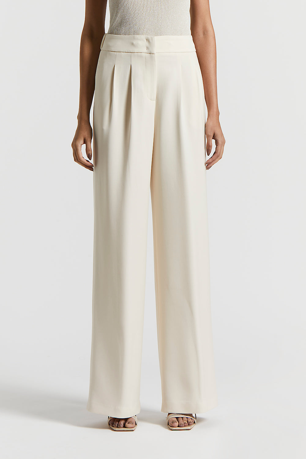 Elegant palazzo trousers with double pleats in stretch viscose cady that harmoniously merge comfort and sophistication.